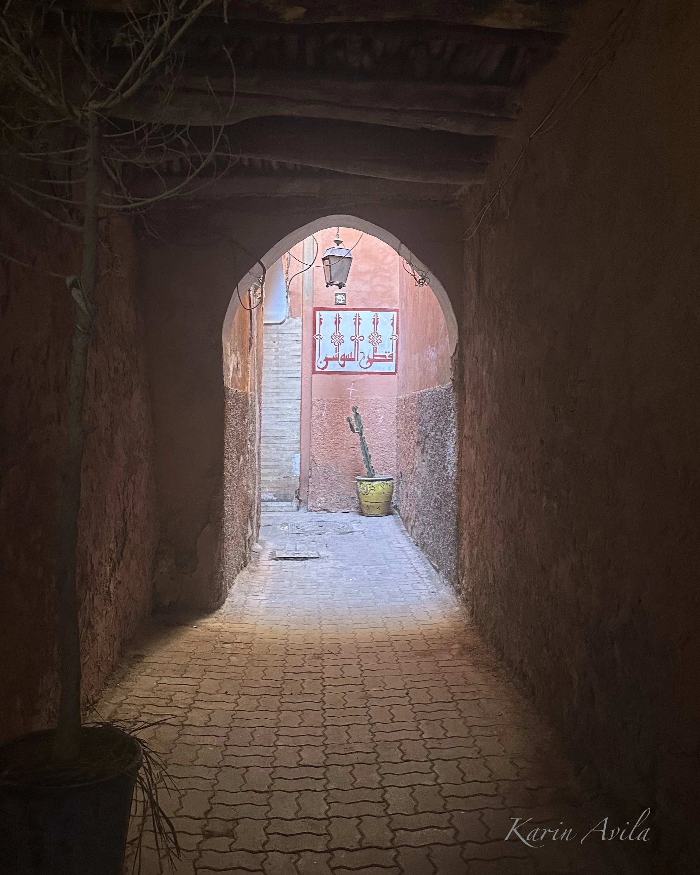 Ksar Essaoussan is located deep inside the Medina. If not for the signage, it would not have been easy to find. As with many sought after locations in Marrakech, the restaurant was discreetly tucked away in the rose-colored maze. I mapped the location and made my way there only to find myself staring down an empty alley with two gentlemen disposing of garbage. After a polite exchange of “bon jour,” I spotted the sign that pointed down the inconspicuous alleyway, assuring me I would find my destination.